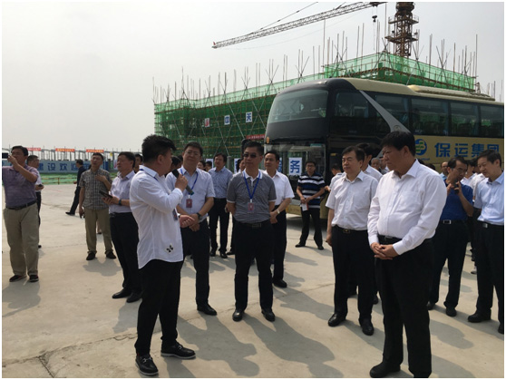 科技成就事業(yè),實干引領(lǐng)未來。在中國共產(chǎn)黨建黨97周年之際,7月1日,河北省委常委、常務(wù)副省長袁桐利帶隊河北省重點項目建設(shè)觀摩組,在保定市委副書記、市政府市長郭建英,保定市委常委、常務(wù)副市長李俊嶺等領(lǐng)導(dǎo)陪同下,重點圍繞華訊方舟集團(tuán)中國天谷•河北太赫茲國際科技產(chǎn)業(yè)基地項目建設(shè)的新進(jìn)展、新成效、新亮點進(jìn)行現(xiàn)場觀摩調(diào)度。保定市徐水區(qū)委書記蘇樹鋒、華訊方舟集團(tuán)高級副總裁丁慶、集團(tuán)高級副總裁孫宏鶴、集團(tuán)副總裁兼河北華訊天谷總經(jīng)理彭輝熱情接待觀摩組一行。